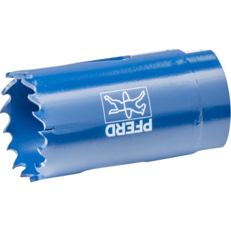Фреза корончата Pferd діаметром 27 мм застосовується для обробки сталі високої якості. Крім цього, вона відмінно підходить для робіт з пластиком, алюмінієм, мідними сплавами.