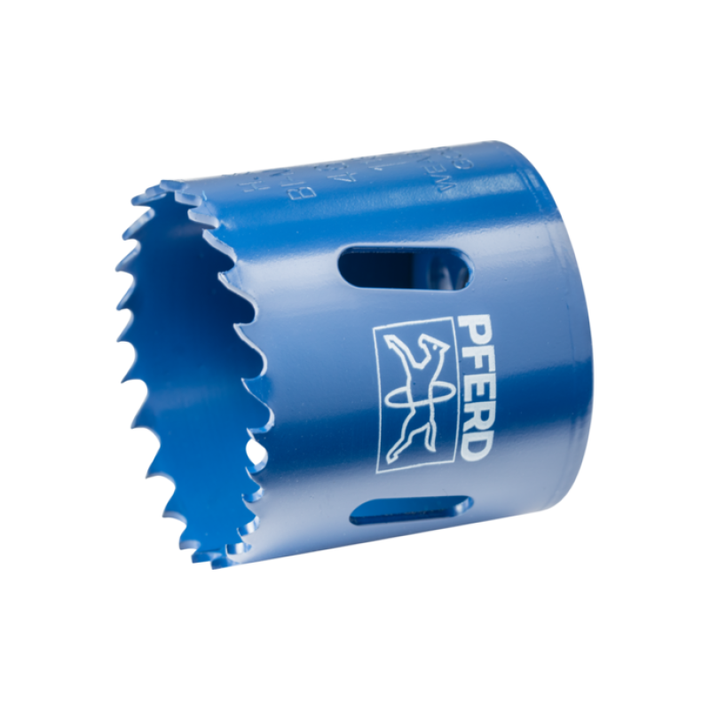 Pferd LS46 - біметалева коронка (кільцева пила) для свердління отворів у сталі, кольорових металах, пластику або дереві. Застосовується разом із дрилем або шурупокрутом у безударному режимі роботи, рекомендується використовувати спеціалізоване мастило для більшої зносостійкості фрези. Для використання коронки необхідний перехідник Pferd LSS2 з центрувальним свердлом.
