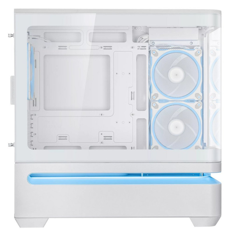 Вигнута панель із загартованого скла плавно переходить із передньої частини на бічну, забезпечуючи панорамний огляд компонентів практично під будь-яким кутом.