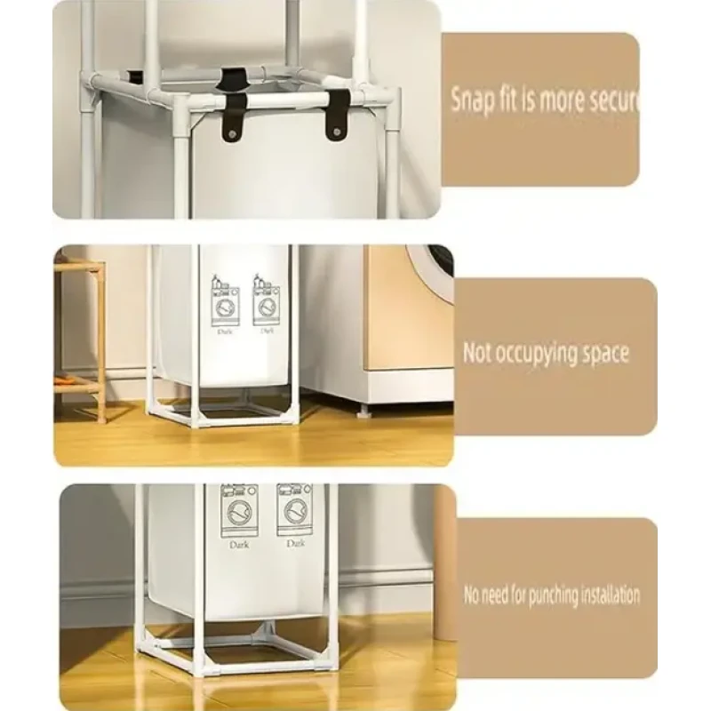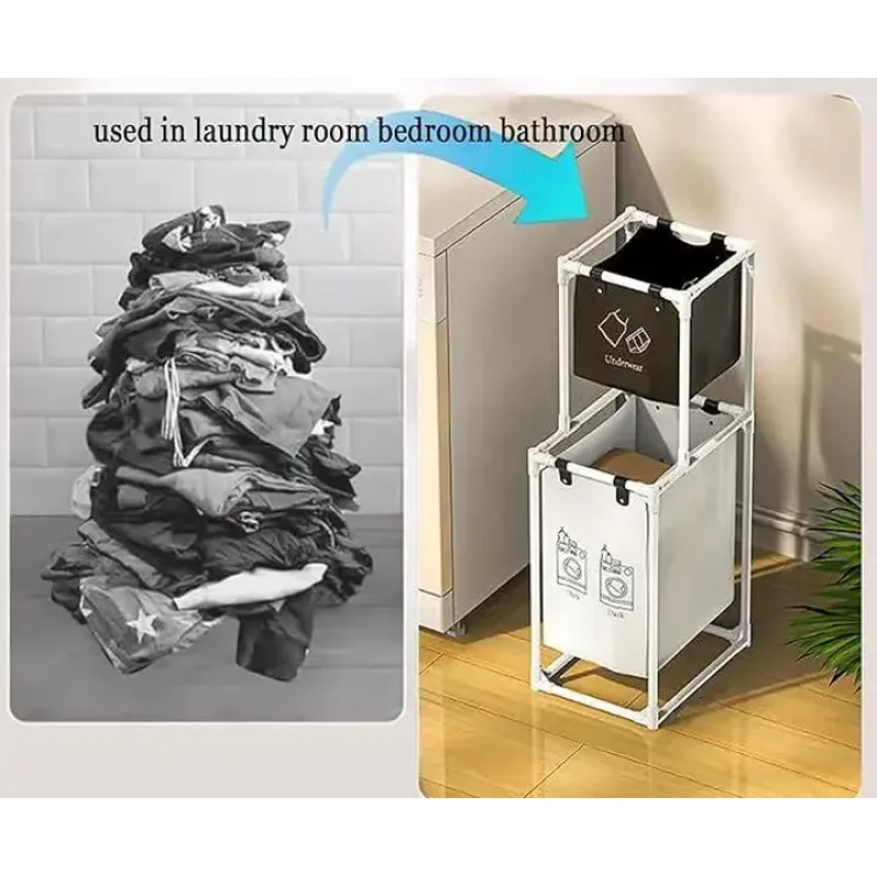 Двошарова конструкція - два окремі відсіки дозволяють розділяти брудний одяг за категоріями, наприклад, за кольором або типом тканини, що спрощує процес прання.