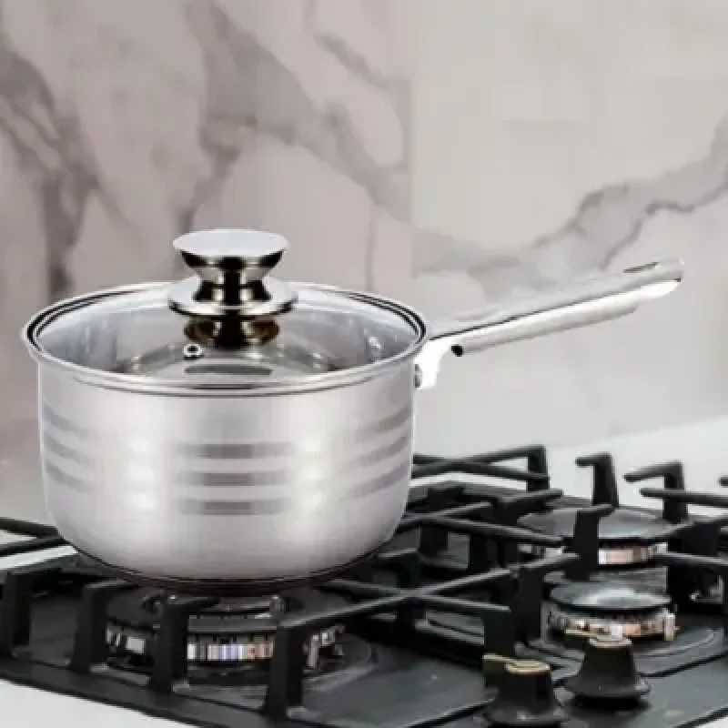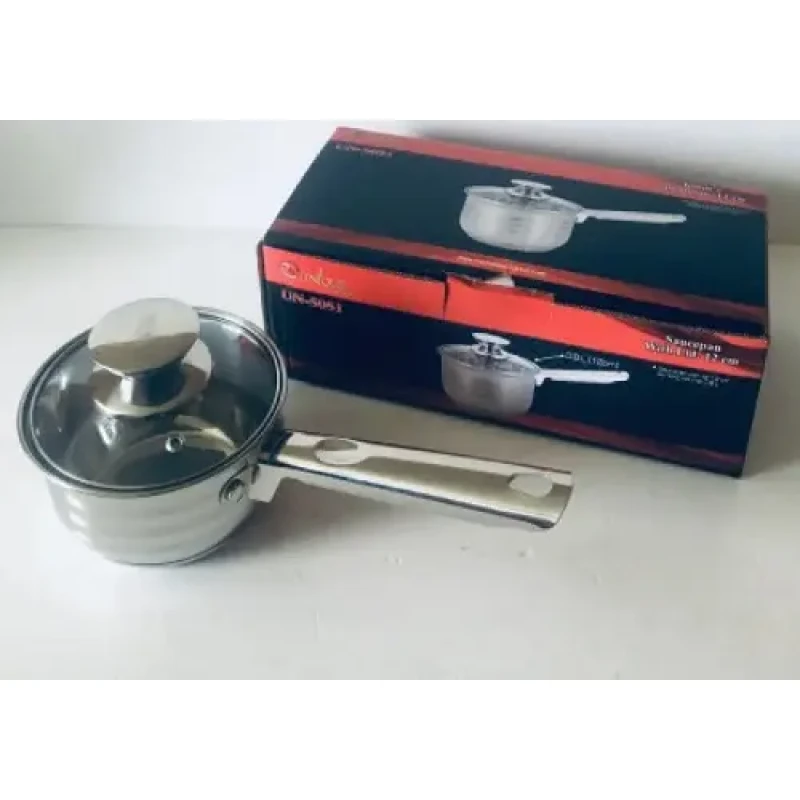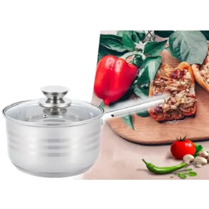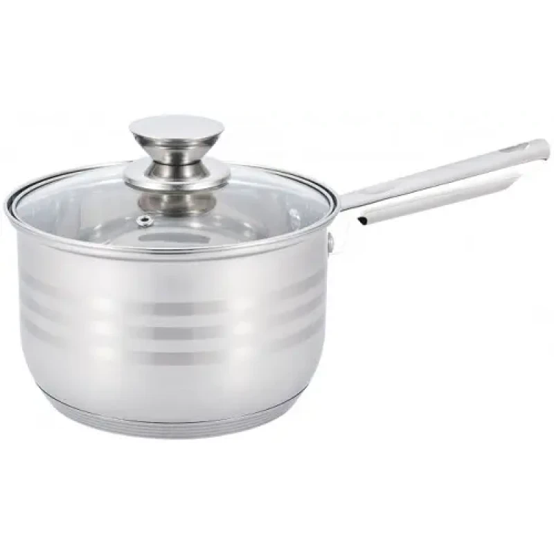 Кухонний ковшик зі скляною кришкою об'ємом 0.8 л. та діаметром 12 см, виконаний з високоякісної нержавіючої сталі. Має 5-ти шарове термоакумулююче, що забезпечує швидке та рівномірне нагрівання. Скляна жароміцна кришка з отвором для виходу пари. Клепана металева ручка, що не нагрівається. Мірна шкала на внутрішній стороні. Ківш сумісний з усіма видами плит, включаючи індукційні. Практична форма країв запобігає накопиченню їжі під час приготування. Легко миється та чиститься. Підходить для митися в посудомийній машині та зберігання в холодильнику. Стильний та ергономічний дизайн.