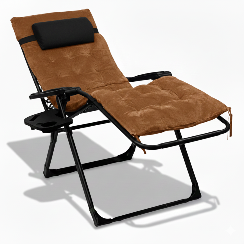 "Розкладне крісло-шезлонг LEOBRO Zero Gravity Premium Plus Velvet — це поєднання комфорту, стильного дизайну та високої якості. Воно чудово підійде для відпочинку вдома, на терасі, дачній ділянці чи біля басейну. Матеріали та ключові особливості Тканина Теслін Сидіння виконане з міцного та повітропроникного матеріалу Теслін, який стійкий до вигорання, швидко висихає й легко очищується. Така тканина добре переносить тривале навантаження та забезпечує комфорт у будь-яких умовах. Матрац із поліестеру та текстилю М’який додатковий матрац виготовлений зі зносостійкого поліестеру та приємного на дотик текстилю, що робить відпочинок ще комфортнішим. Наповнювач із штучної бавовни У середині матраца знаходиться легкий і пружний наповнювач зі штучної бавовни. Він чудово тримає форму, не просідає та забезпечує приємну м’якість. Посилена сталева конструкція Каркас шезлонга виготовлений зі сталевої труби й покритий порошковою фарбою. Така рама не піддається корозії, витримує значні навантаження та забезпечує довгий т