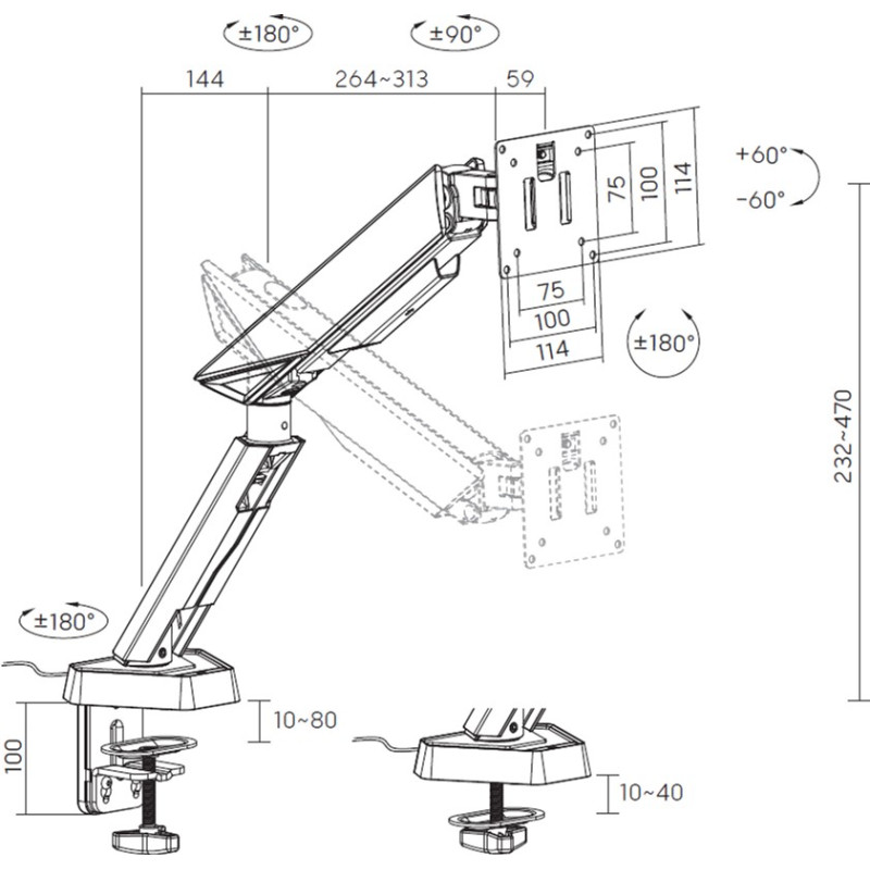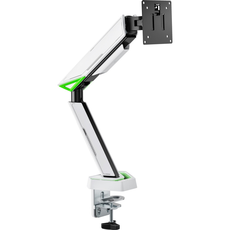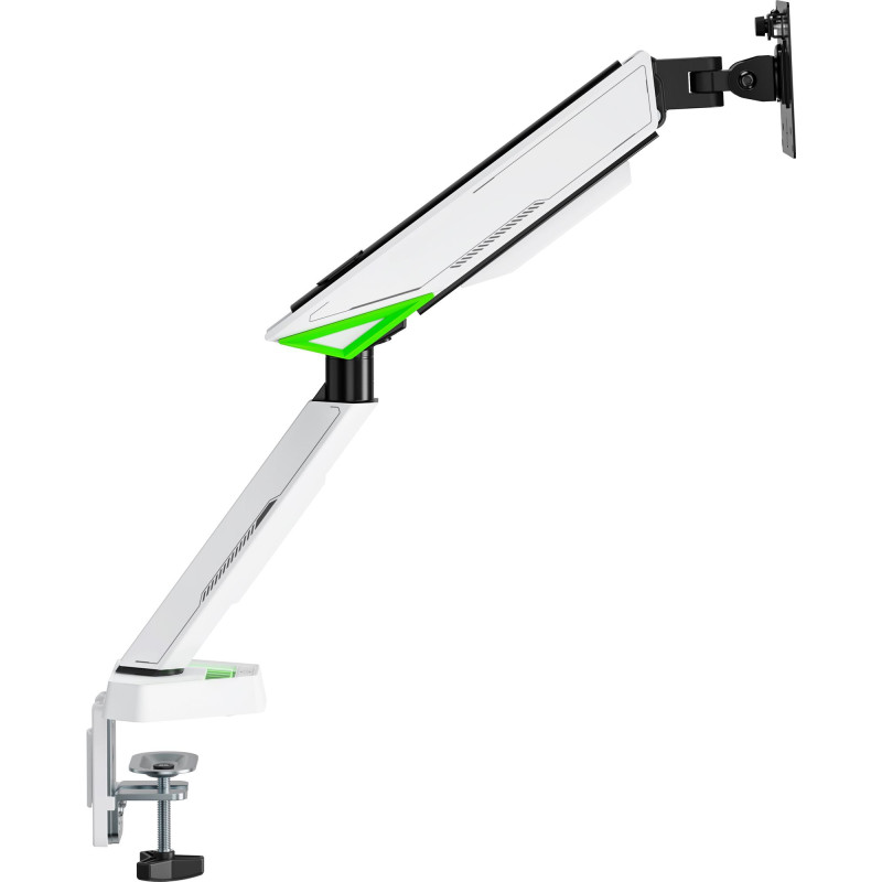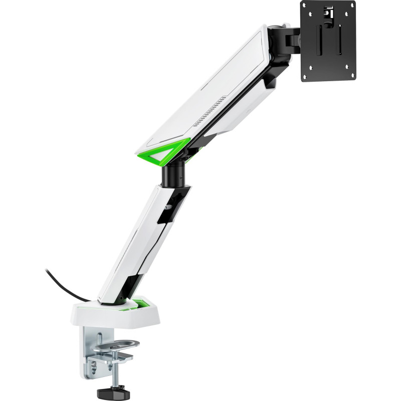 Підтримка стандартів VESA 75х75 та 100х100 забезпечує сумісність з більшістю сучасних моніторів. Кріплення встановлюється за допомогою струбцини або наскрізного отвору на стільницях завтовшки від 10 до 80 мм. Швидкознімна VESA-пластина полегшує монтаж, а вбудована система прихованого прокладання кабелів дозволяє підтримувати порядок на столі. Це ідеальне рішення для тих, хто прагне поєднати функціональність, стиль та візуальний ефект у своїй ігровій чи робочій зоні.
