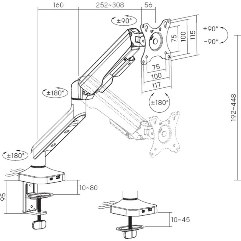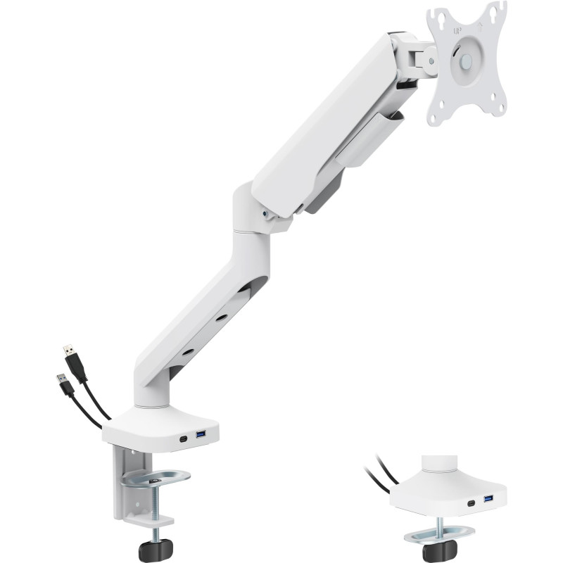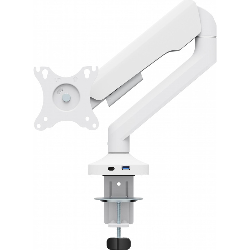 Officepro MA451W – це сучасне рішення для ефективного розміщення екрану, що поєднує функціональність, надійність та стильний дизайн. Підходить для плоских та вигнутих моніторів розміром від 17 до 40 дюймів та вагою від 2 до 12 кг. Ідеально підходить як для офісного, так і для домашнього використання. Корпус виготовлений зі сталі, алюмінію та пластику. Регульована конструкція дозволяє нахиляти монітор в діапазоні ±90°, обертати на 180° та повертати ліворуч/праворуч на 90°, забезпечуючи зручний кут огляду для будь-яких завдань. Кріплення підтримує стандарти VESA 75x75 та 100x100 мм. Монтаж можливий за допомогою струбцини або наскрізного кріплення, що дозволяє встановлювати пристрій на стільниці завтовшки від 10 до 80 мм. Завдяки вбудованим портам USB 3.0 і Type-C ви отримаєте швидкий доступ до зарядки або передачі даних прямо на робочому місці. Органайзер для кабелів забезпечує акуратність та мінімалізм на столі. Це універсальне рішення для комфортної та ергономічної роботи на комп’ютері.