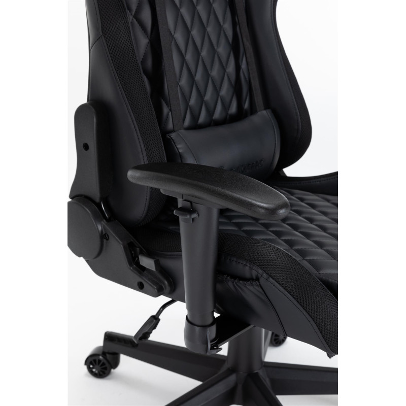 Зручні 2D підлокітники зі щільного, зносостійкого каучуку, м’які подушки під голову і поперек – проведений час у кріслі буде максимально комфортним. Крісло оснащене режимом гойдання типу Tilt та фіксації спинки в різних положеннях – від 90 до 180, що дозволяє розслабитися прямо під час геймплею.