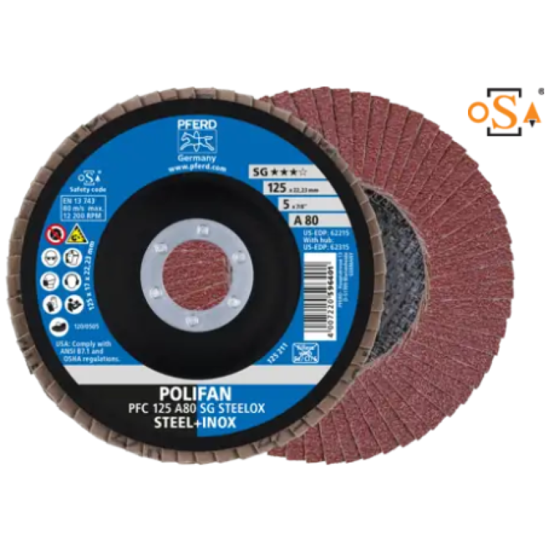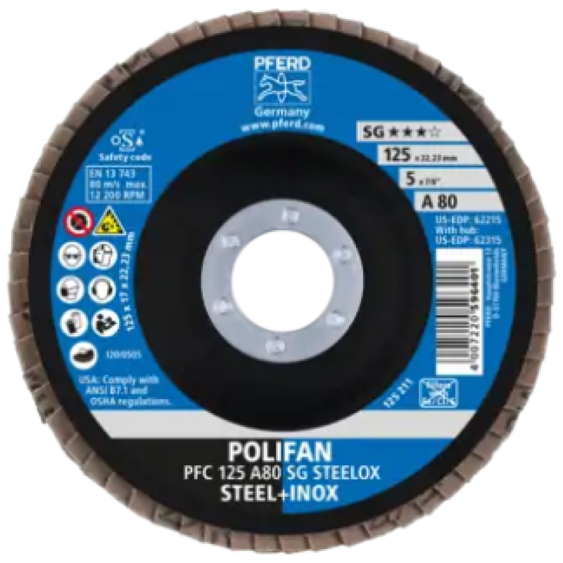Пелюстковий круг POLIFAN для сталі та нержавіючої сталі (INOX) з високою швидкістю знімання припуску та дуже довгим терміном служби інструменту.