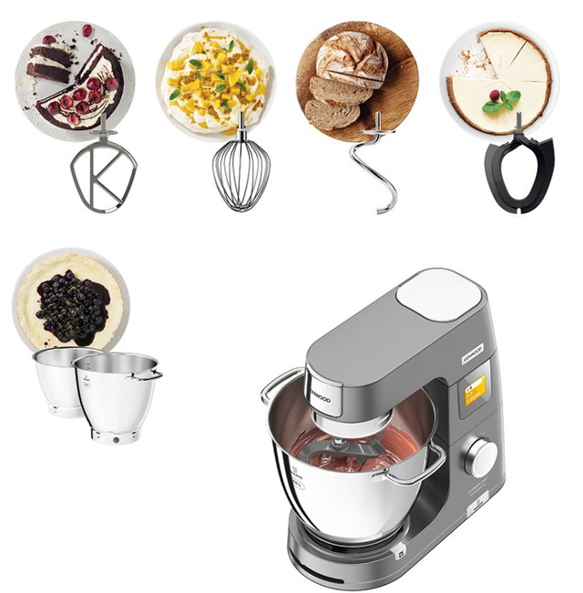Комплект поставки включає всі необхідні для роботи аксесуари. Наявність двох чаш Nesting DuoBowl об'ємом 5 і 7 л дає можливість одночасно готувати кілька страв. Технологія планетарного змішування забезпечує рівномірний і якісний заміс вмісту за рахунок зустрічного обертання насадки і чаші міксера. Змінити насадку одним легким рухом дозволяє запатентована фірмова технологія TWIST.