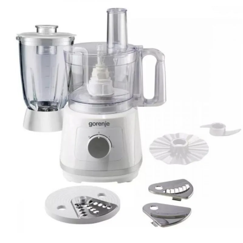 Тип кухонний комбайн Потужність 800 Вт Об'єм основної чаші 2.4 л Об'єм чаші блендера 1.5 л Кількість швидкостей 2 Режими імпульсний режим Функції змішування, шинковка, тертка, подрібнювач, блендер Насадки диск для тонкого нарізання, для шинкування, диск для нарізання картоплі, для збивання Особливості імпульсний режим, насадки можна мити в посудомийній машині, нековзні ніжки, захист від бризок Габарити 25.5 х 22 х 41 см Вага 3.9 кг Колір білий Країна виробництва Китай Для роботи з такими твердими інгредієнтами, як овочі, горіхи або тісто, потрібна велика потужність. Ефективний двигун потужністю 800 Вт допоможе вам досягти бажаного результату. Насолоджуйтесь цим необхідним приладом із широкими можливостями. Насадки для нарізки, розминання, подрібнення, шаткування, змішування. Практично немає нічого, чого не міг зробити цей практичний процесор з численними насадками. Насадки можна легко мити в посудомийній машині. Чаша об'ємом 1,5 л оснащена мірними мітками та дозуючим стаканчиком у верхній частині кришки. Немає необхідності знімати кришку під час додавання інгредієнтів. Харчовий комбайн оснащений подвійним лезом із нержавіючої сталі. Воно забезпечує ефективне та швидке подрібнення та нарізку. У літню пору ніж може бути особливо корисний завдяки своїй здатності подрібнювати лід. Щоб такий потужний пристрій залишався на місці, він повинен мати належну форму та гумові ніжки знизу, завдяки яким прилад не рухається під час роботи або при від'єднанні чаші.
