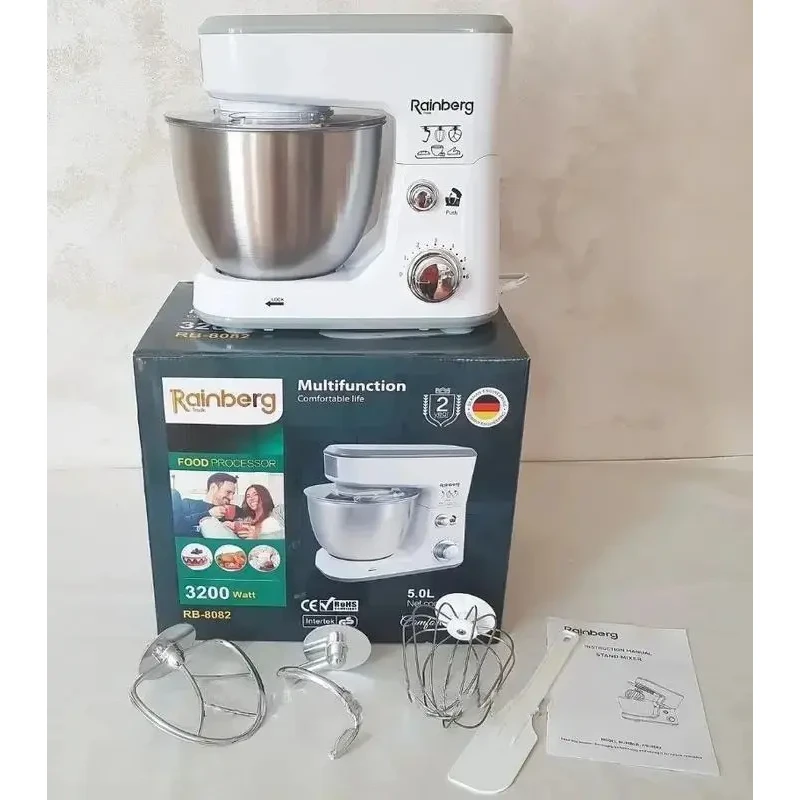 Кухонний тістоміс Rainberg RB-8082 кухонний комбайн Міксер з чашею для тіста 3200W Тістомішалка чаша 5 л