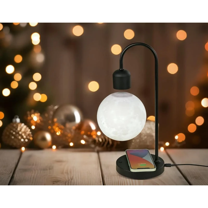 ЛЕВІТУЮЧИЙ МІСЯЦЬ- плаває без будь-якої підтримки або контакту, використовує техніку магнітної левітації, місяць живиться через повітря за допомогою індукції, світло контролюється сенсорною кнопкою: увімкнення/вимкнення на дерев'яній основі.