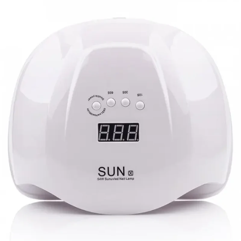 Потужна, безпечна та ефективна лампа Sun X 54 Вт. Її оснащення передбачає застосування нових світлодіодних елементів із широким діапазоном хвиль для найкращої полімеризації гелевих лаків та гелевих матеріалів із лід-активністю.