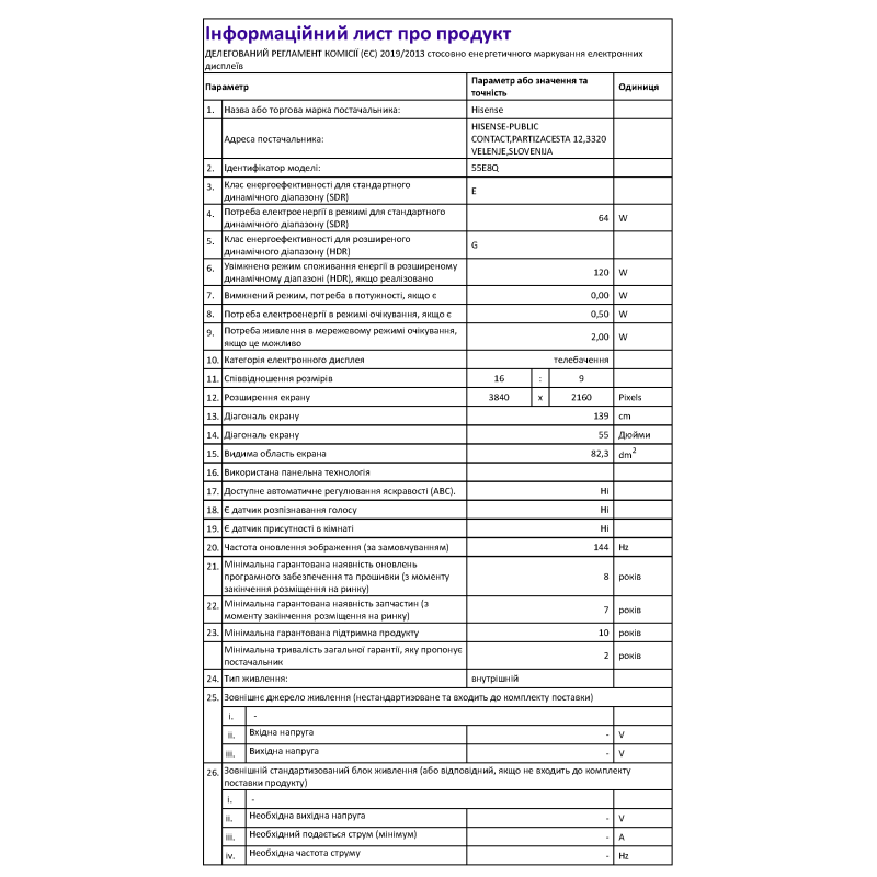 | Діагональ, дюйм | 55 |