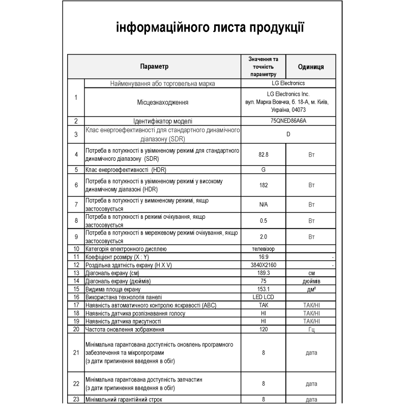 Діагональ екрану: 75" Роздільна здатність: 3840 x 2160 (4K Ultra HD)