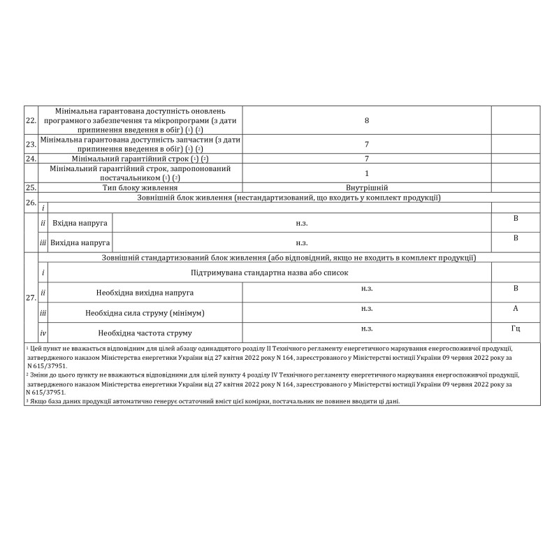 | Клас енергоспоживання | А |