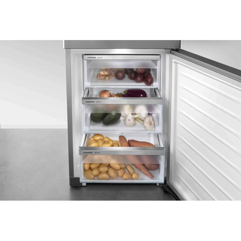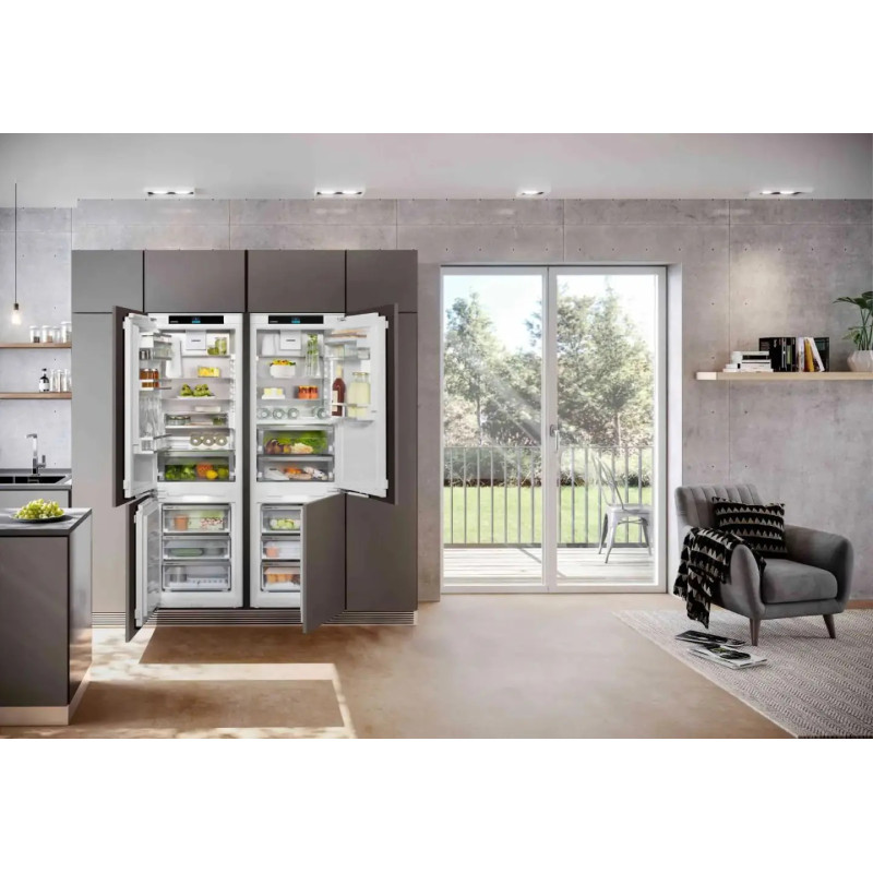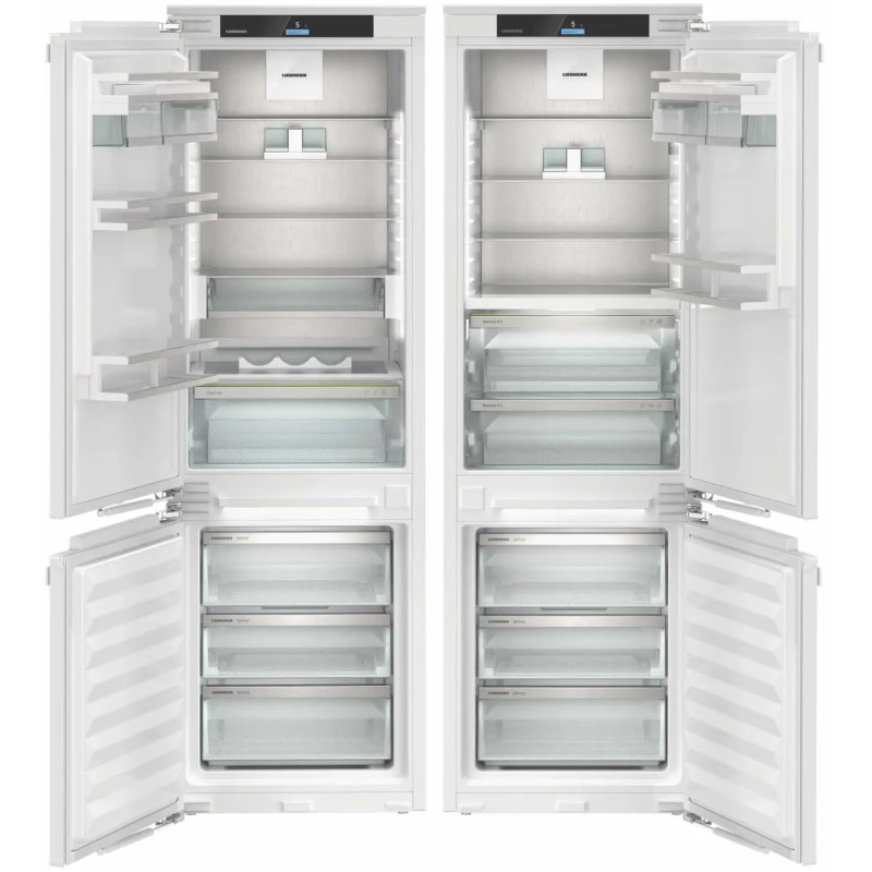 Вбудований холодильник Liebherr IXCC 5155 22 Prime — це функціональна багатодверна модель класу A++ із системою NoFrost і великим корисним об'ємом 484 л. Завдяки технологіям BioFresh, DuoCooling та EasyFresh продукти зберігають свіжість та поживні властивості у кількох незалежних зонах. Інтелектуальне керування SmartDevice та сенсорна панель забезпечують зручність у користуванні, а тихий інверторний двигун гарантує комфорт у побуті. Ергономічний дизайн із LED-підсвіткою та скляними полицями поєднує естетику та практичність.