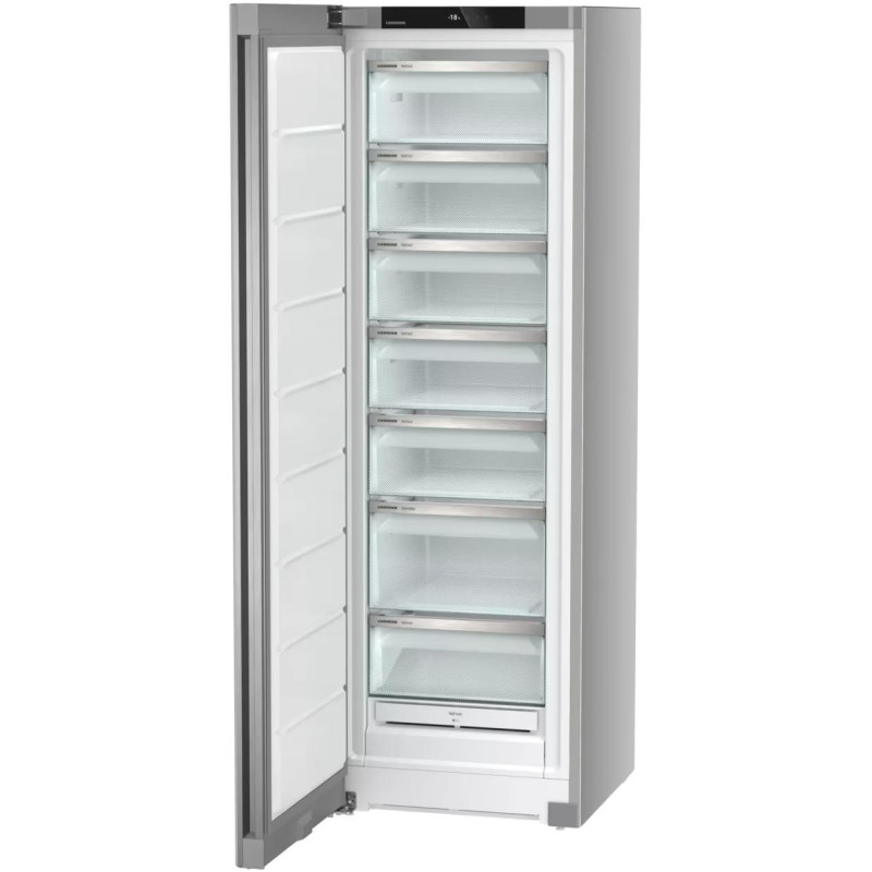 Морозильна камера Liebherr SFNsfd 5227 Plus виготовлена в окремостоячому форматі та орієнтована на містку зберігання продуктів. Корисний об'єм 271 л дає змогу впорядкувати запаси без перевантаження відділень. Система NoFrost усуває накопичення інею та спрощує догляд. Сенсорне керування із внутрішнім дисплеєм забезпечує точний контроль температури. Сталеві двері в сірому кольорі підкреслюють стримування сучасного вигляду.