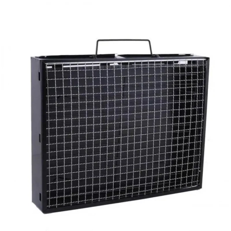 Всі деталі BBQ Grill Portable склепані між собою, а сам мангал складається у форму зручного кейсу, що не дозволить вам втратити важливу деталь та заощадити місце. Мангал обладнаний центральними ручками, що не нагріваються. У комплекті з мангалом Ви також отримаєте грати-гриль із харчової сталі. У мангалі також передбачені отвори під грати-гриль, які дозволяють фіксувати її на двох рівнях, що значно розширить ваші можливості у виборі продуктів та приготуванні страв. Грати-гриль складається і легко поміщається всередину мангалу.