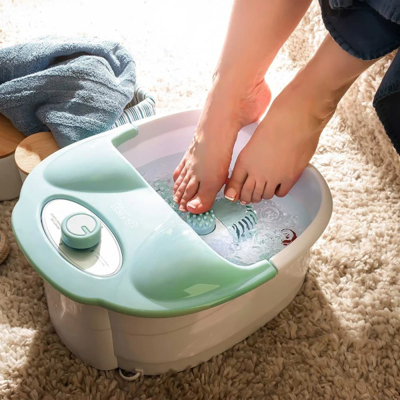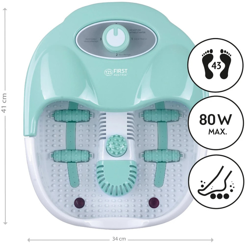 Розслаблення починається зі стоп, а звідти охоплює все тіло. Побалуйте себе чудовим тайм-аутом у спа-салоні FA-5116-3 для ніг, вібраційним і бульбашковим масажем - за оптимальної температури завдяки перемиканню тепла та інфрачервоного світла. Стимулюється кровообіг, стимулюються рефлекторні зони стопи. Ви відчуєте себе неначе переродилися. Доступні три програми масажу. Оснащений 4 масажними роликами та практичною ручкою для перенесення.