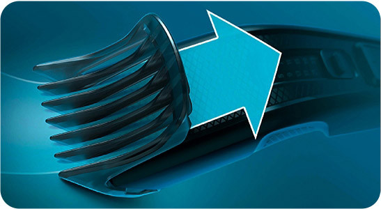 Удосконалена форма гребінця Trim-n-Flow запобігає забиванню машинки волоссям під час стрижки. Ви можете стригти волосся від початку до кінця без необхідності робити перерву для очищення.