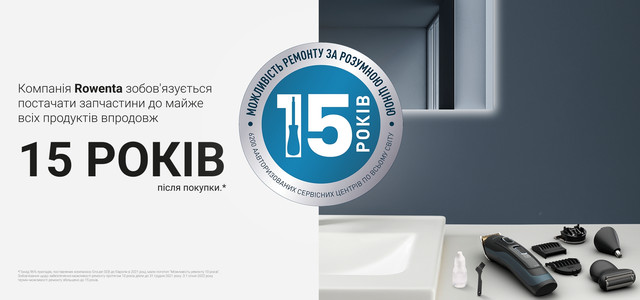 Самозаточувальні леза з нержавіючої сталі з титановим покриттям довго залишаються гострими та ідеально точно зрізають будь-яке волосся — навіть жорстке й густе. Довговічні леза Леза мультитримера не потребують заміни та служитимуть до 15 років*, забезпечуючи максимальний комфорт під час кожного використання пристрою. *За результатами внутрішніх тестів на міцність відповідно до протоколу Groupe SEB, 2020