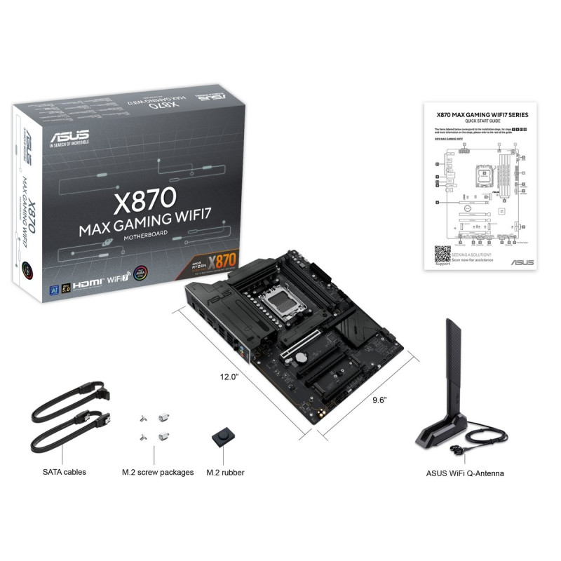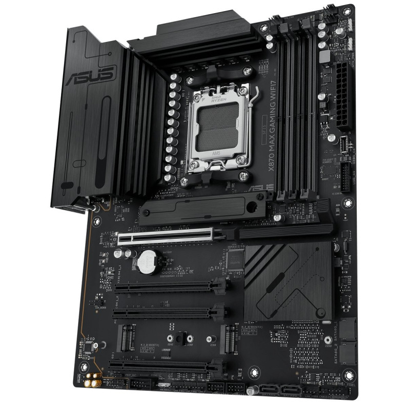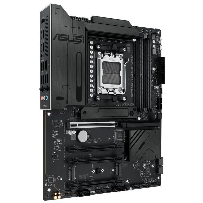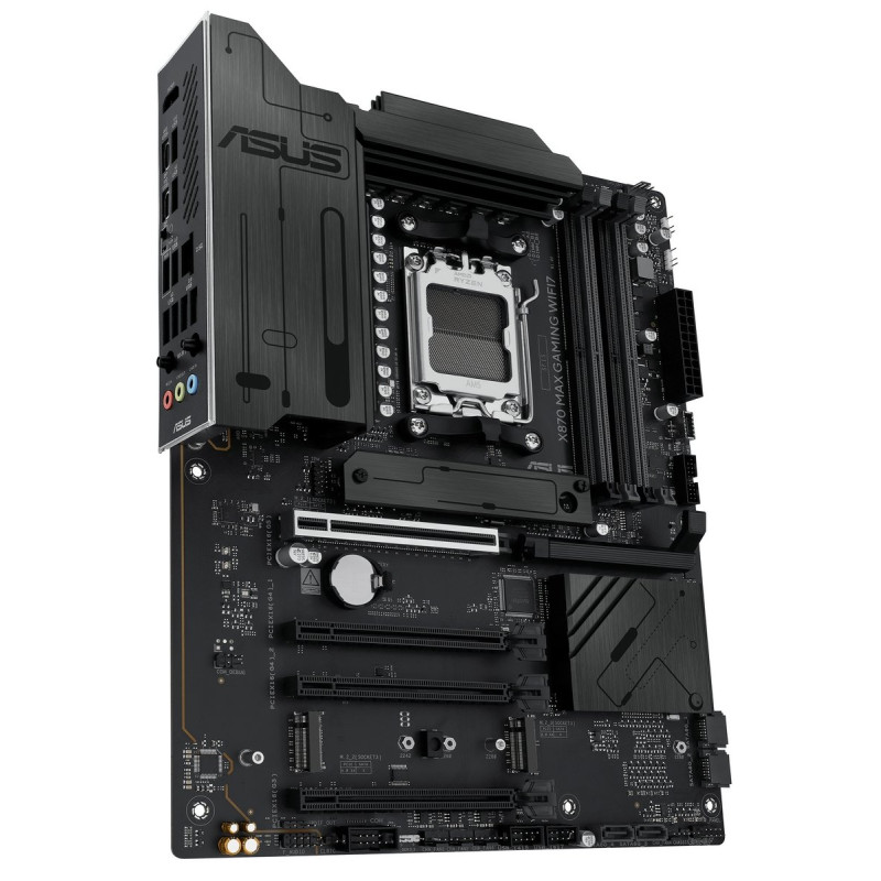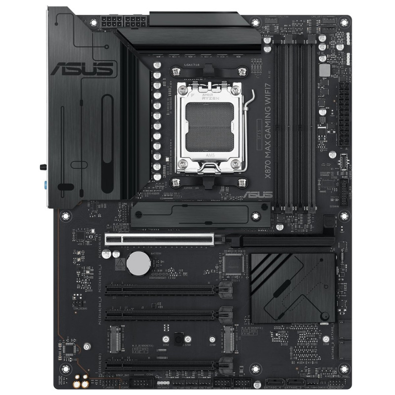 Материнські плати ASUS серії X870 розроблені спеціально для того, щоб розкрити весь потенціал процесорів AMD Ryzen 9000-ї серії. Материнська плата X870 MAX GAMING WIFI7, що має надійну конструкцію, комплексні рішення для охолодження й інтелектуальні можливості настроювання, надає користувачам і складальникам ПК "зроби сам" низку можливостей для оптимізації продуктивності за допомогою інтуїтивно зрозумілого програмного забезпечення та прошивки. Її розроблено як ПК із підтримкою просунутого штучного інтелекту, забезпечуючи потужність і можливості під’єднання, необхідні для вимогливих застосунків штучного інтелекту.