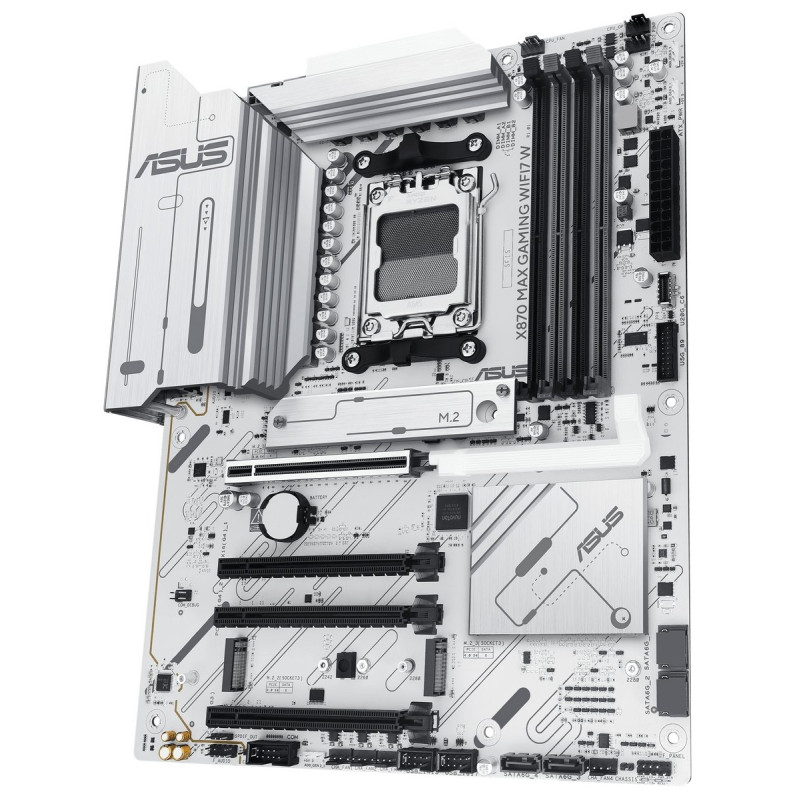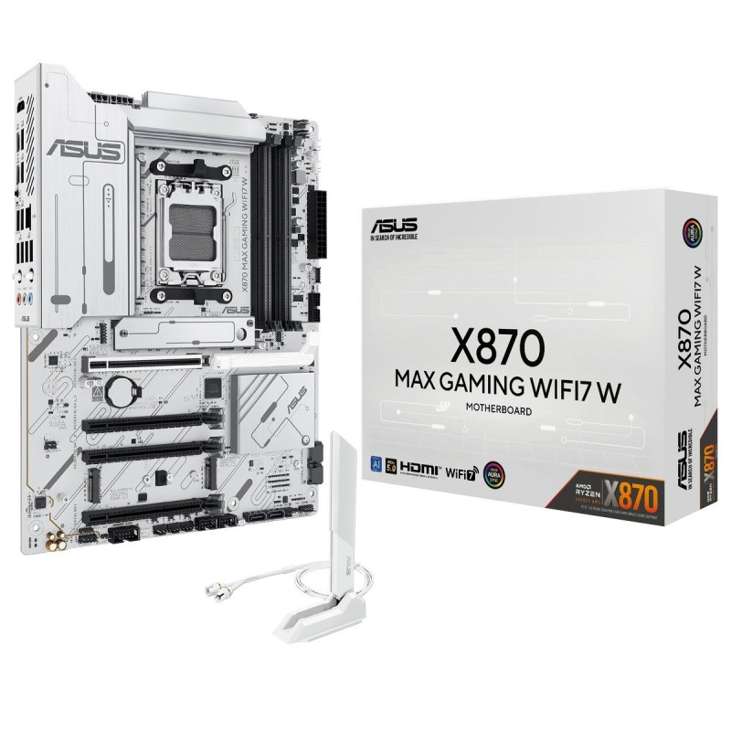 Материнські плати ASUS серії X870 розроблені спеціально для того, щоб розкрити весь потенціал процесорів AMD Ryzen 9000-ї серії. Материнська плата X870 MAX GAMING WIFI7, що має надійну конструкцію, комплексні рішення для охолодження й інтелектуальні можливості настроювання, надає користувачам і складальникам ПК "зроби сам" низку можливостей для оптимізації продуктивності за допомогою інтуїтивно зрозумілого програмного забезпечення та прошивки. Її розроблено як ПК із підтримкою просунутого штучного інтелекту, забезпечуючи потужність і можливості під’єднання, необхідні для вимогливих застосунків штучного інтелекту.