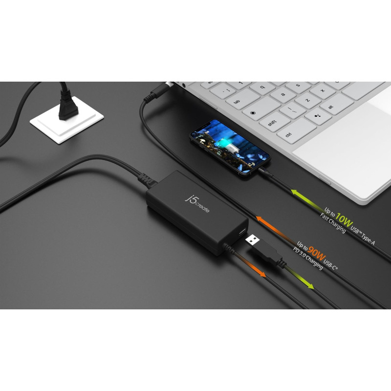 Кабель USB-C може забезпечувати потужність до 90 Вт, а порт USB Type-A – до 10 Вт, що дозволяє швидко заряджати два пристрої одночасно. Адаптер живлення підтримує захист від перенапруги, перезарядки, перевантаження та перегріву, щоб запобігти пошкодженню підключених пристроїв і забезпечити безпечну зарядку.