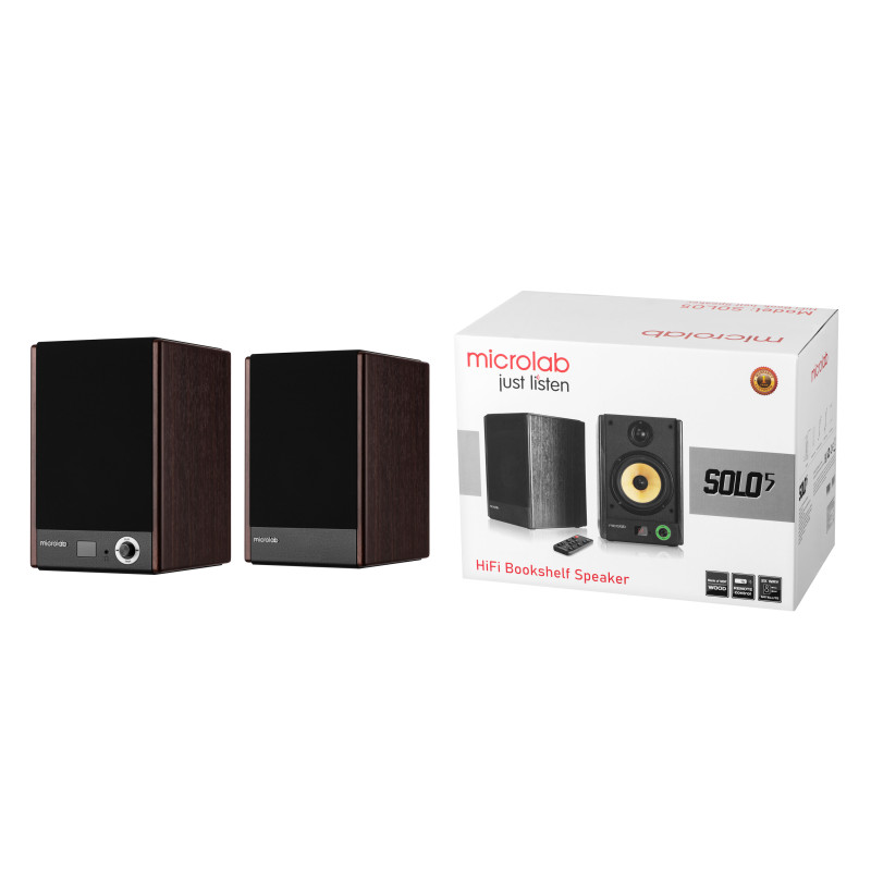 Акустична система MICROLAB SOLO 5 2.0 – це потужні стереодинаміки з елегантним дерев'яним корпусом, які забезпечують високоякісне звучання. Двополосова конструкція Bi-Amp та шовкові купольні твітери гарантують точність відтворення музыки. Скловолокнистий дифузор із гумовим обідком зменшує спотворення та робить звук природним. Завдяки підтримці Aux, оптичного входу, дистанційному керуванню та дисплею використання стає ще зручнішим.