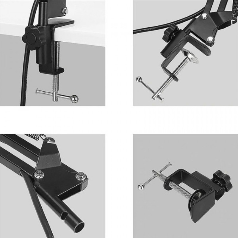 Регульована настільна підставка, яка кріпиться на стільниці, забезпечує надійну фіксацію мікрофона та дозволяє зменшити сторонні вібрації. Її можна використовувати і з іншими мікрофонами.