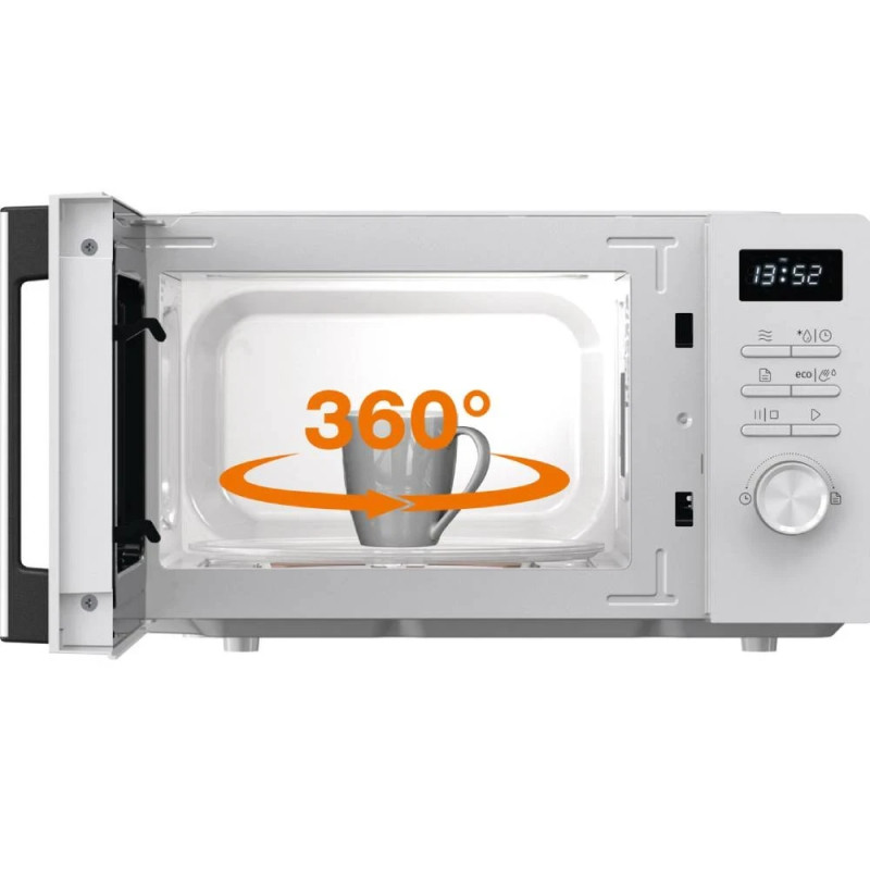 Постійне обертання поворотного столу дає змогу мікрохвилям ефективно й рівномірно нагрівати страви, що готуються.