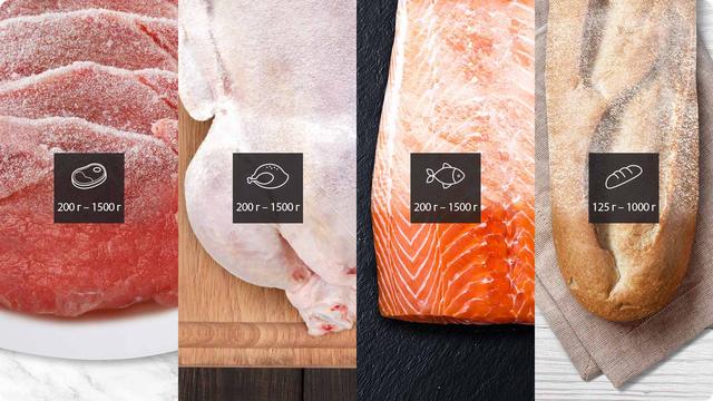 Розморожуйте продукти та напівфабрикати швидко та правильно. Функція швидкого розморожування дає змогу вибрати один із 5 типів продуктів: м'ясо, птицю, рибу, овочі та хліб. Після цього мікрохвильова піч самостійно підбере час і температуру, при яких продукти швидко та м'яко розморозяться та підготуються до подальшого приготування.