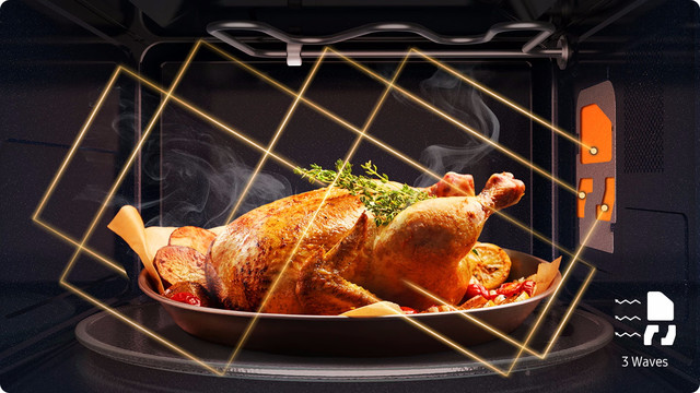Система потрійного розподілу мікрохвиль Triple Distribution System відповідає за рівномірне прогрівання продуктів по всьому об'єму при розморожуванні, приготуванні та підігріві зі збереженням корисних та поживних властивостей страв. Мікрохвилі «пронизують» камеру в усіх напрямках та з кількох сторін впливають на продукти, скорочуючи час приготування та забезпечуючи чудовий результат.