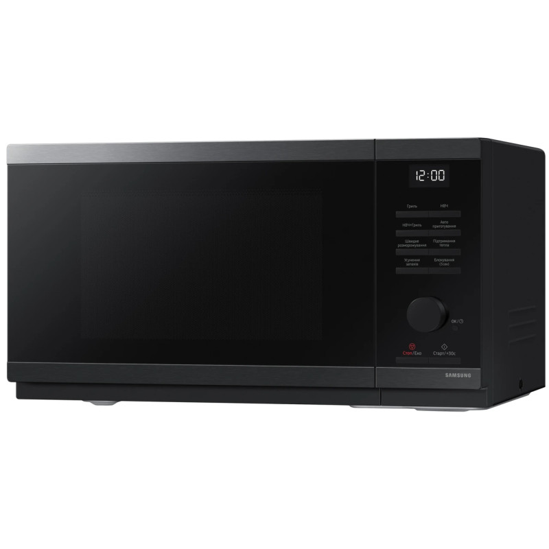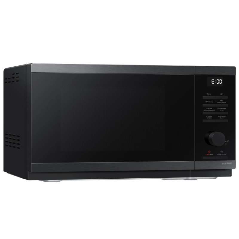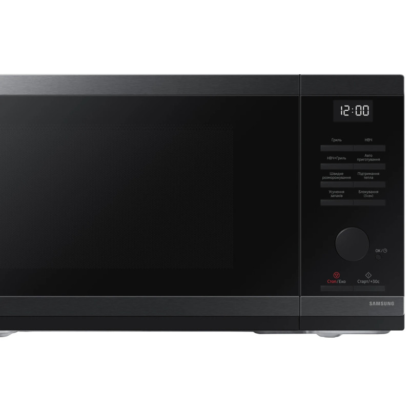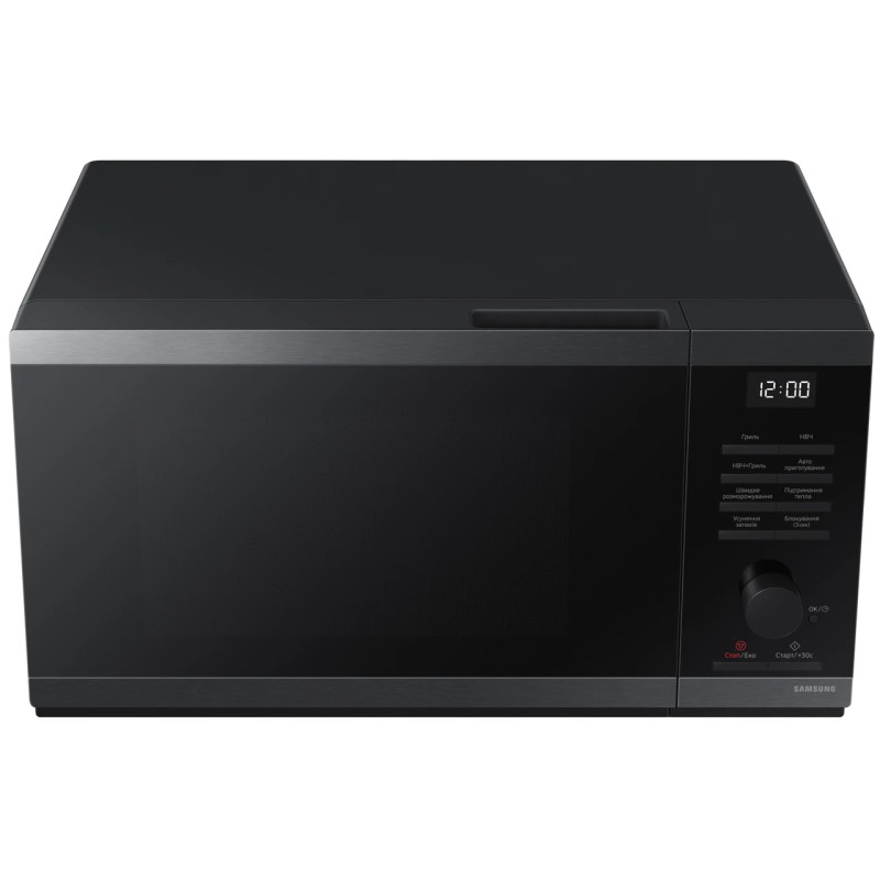 Лаконічний стильний дизайн Samsung поєднує поверхню зі шліфованого металу з темним глянцем, надаючи мікрохвильовій печі елегантного вигляду. Дві втоплені ручки зверху та знизу доповнюють лаконічний стиль та дозволяють легко відкрити дверцята будь-якою рукою.
