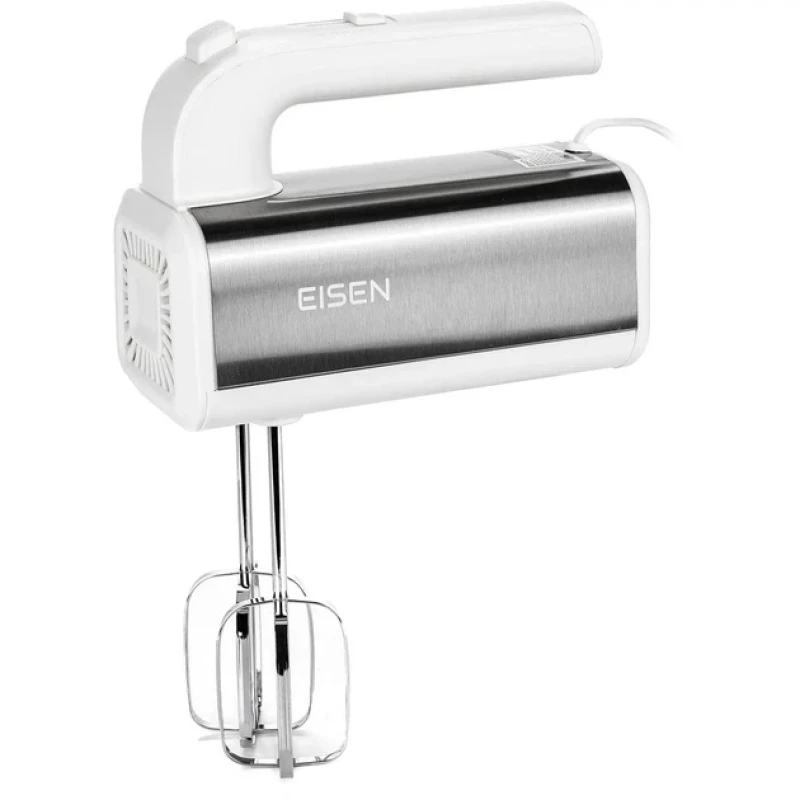 Ручний міксер Eisen EHM-55W поєднує високу ефективність, практичність та сучасний дизайн. Потужність 550 Вт дозволяє легко змішувати інгредієнти різної консистенції — від легких кремів до густого тіста. Пристрій оснащений 5 швидкостями, що дає змогу налаштувати інтенсивність роботи під будь-який рецепт.Корпус виконаний із якісного пластику у білому кольорі з металевою декоративною вставкою, що додає пристрою естетичності. Насадки виготовлені з хромованої сталі, що гарантує довговічність і безпечний контакт із продуктами.Для зручності використання міксер має ергономічну ручку, зручно розташовані кнопки та достатню довжину шнура — 80 см. Низький рівень шуму забезпечує комфортну роботу, а захист від перегріву запобігає пошкодженню пристрою та підвищує його надійність.Компактні розміри та мала вага дають змогу легко зберігати міксер навіть у маленькій кухні.ХарактеристикиКількість швидкостей: 5Потужність: 550 ВтТип: ручнийВага в упаковці: 0.75 кгМатеріал корпуса: пластикКолір: білий / металева вставка