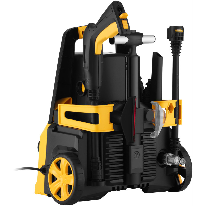 Використання Мінімийка призначена для миття транспортних засобів (автомобілів, човнів, мотоциклів), будівель, терас, фасадів, садового інвентарю та меблів, очищення забруднених поверхонь з використанням води та миючих засобів під тиском. Також виріб можна використовувати для очищення тротуарної плитки, доріжок, фасадів чи жолобів. Функціонал Функціонал пилососу для сухого та вологого прибирання буде корисним і для салону чи багажника машини, майстерні, підсобного приміщення, тераси тощо. Конструкція має стильний, сучасний дизайн, зручну ручку та транспортувальні колеса. Малошумний, екологічно чистий двигун забезпечує високу продуктивність. Водонепроникність IPX5 – очисник високого тиску захищений від струменів води, що ідеально підходить для зовнішнього застосування. Функція Auto-Stop - автоматично зупиняє двигун миття, при звільненні курка на пістолеті розпилювача Потужна зброя проти бруду Миття високого тиску 2E AquaClean 4 в 1 оснащене потужним двигуном 1600 Вт, забезпечує максимальний тиск 130 бар, забезпечуючи максимальну витрату 480 л/год, що гарантує ефективне видалення стійких забруднень, забезпечуючи приголомшливу ефективність очищення. Зручне місце для зберігання аксесуарів дозволяє тримати все гаразд і завжди під рукою під час збирання чи зберігання. Транспортувальні колеса забезпечують зручне переміщення пристрою без зайвих зусиль навіть на нерівних поверхнях.