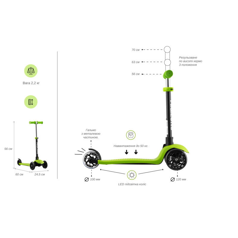 | Особливості | колеса з LED-підсвічуванням |