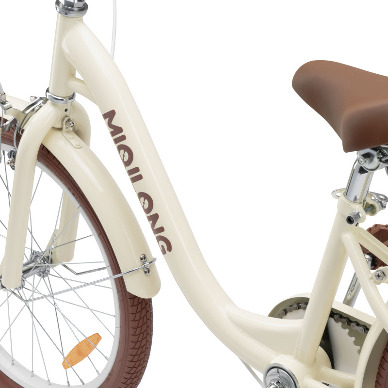Велосипед для дітей Miqilong LS 20 - це втілення сучасного уявлення про ретро дизайн. Використання фарбування у стилі 50-х років ХХ століття та корзинки ручної роботи з натурального ротангу роблять дизайн велосипеда вишуканим та елегантним.
