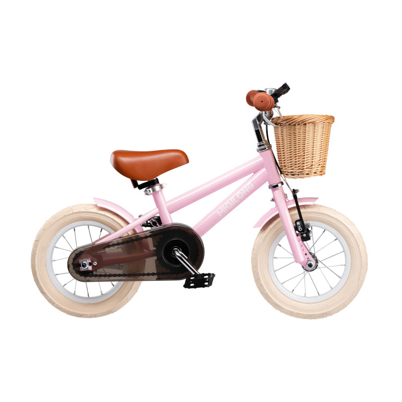 Дитячий велосипед Miqilong RM - це втілення сучасного бачення ретро дизайну. Фарбування в стилі 50-тих років ХХ століття і корзинка ручного плетіння з натурального ротанга роблять дизайн велосипеда вишуканим і витонченим. Рама велосипеда виконана з металу і має необхідний запас міцності, щоб витримати всі тяготи навчання дитини катанню на велосипеді.