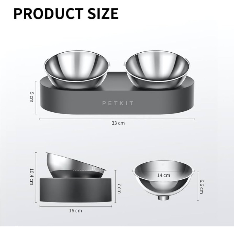У металевій подвійній мисці Petkit Fresh Nano, що регулюється, розрахований оптимальний кут нахилу для домашніх улюбленців під час годування, що допомагає їм розвивати здорові харчові звички. Дві миски, підняті на потрібну висоту, дозволяють вашому коту/дрібному собаці сидіти прямо під час їжі, надаючи шлунку достатньо місця для належного перетравлення їжі. Кут нахилу 15° зручний для плоских котів, таких як перси, британські короткошерсті, гімалаї та шотландські висловухі, оскільки зменшує тиск на шию, коли вони опускають голову, щоб поїсти. Металева миска виготовлена з високоякісної нержавіючої сталі марки 304, що робить її міцною, гігієнічною, неіржавіючою та придатною для миття в посудомийній машині.