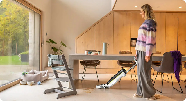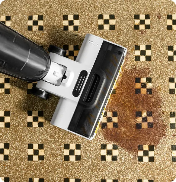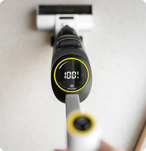 Завдяки цьому пристрій у режимі реального часу регулює потужність всмоктування та подачу води, забезпечуючи максимально ефективне прибирання на будь-якому покритті — від плитки до килимів.