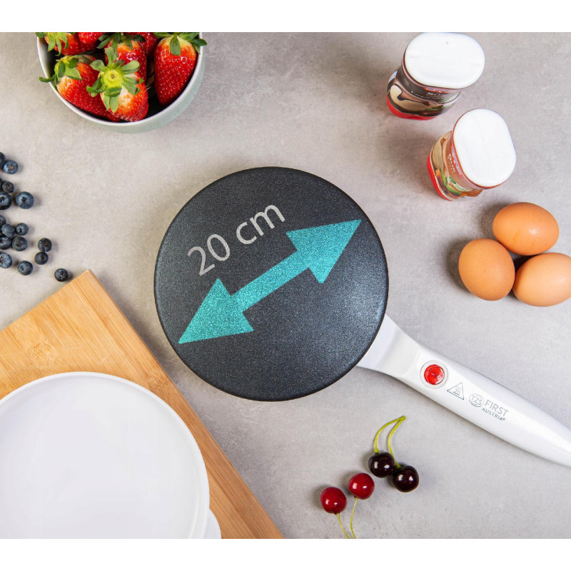 Млинниця FIRST FA-5307-2 допоможе з легкістю приготувати ваші улюблені млинці. Модель має одну круглу жарову поверхню діаметром 20см з антипригарним покриттям. Завдяки автоматичному підтриманню температури поверхня млинниці не перегрівається і млинці виходять рум'яними й акуратними.