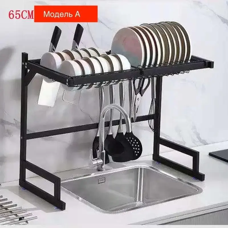 Багатофункціональна Двоярусна полиця - органайзер JYH для сушіння посуду над раковиною, чорна 65 см