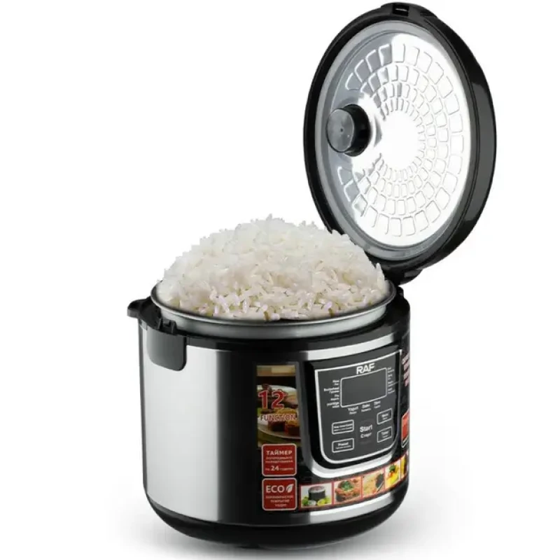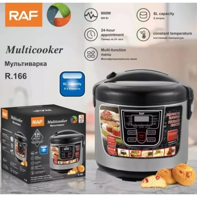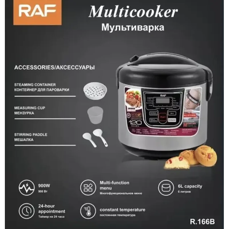 Мультиварка RAF R.166 самостійно приготує страву в певний час і підтримуватиме її в режимі підігріву. Досить просто покласти інгредієнти, вибрати додаток, натиснути кнопку «Старт» і дочекатися приємного звукового сигналу, який сповіщає про приготування страви.
