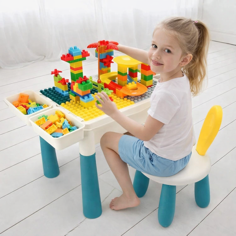 Забудьте про заворушення з іграшками! Цей багатофункціональний дитячий столик не тільки захоплює малюка, але й допомагає підтримувати порядок завдяки вбудованому відсіку для зберігання конструктора.