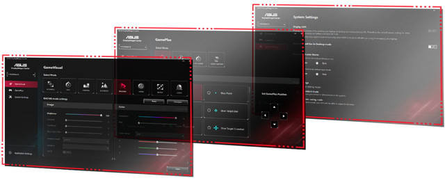 Оновлене програмне забезпечення DisplayWidget Cente з новим інтерфейсом дозволяє керувати налаштуваннями монітора за допомогою миші без необхідності входити до екранного меню. Технологія посилення тіней ASUS Shadow Boost робить темні області екрану більш чіткими та контрастними, не торкаючись інших ділянок. Так вдається покращити загальний огляд та зробити затінені зони більш видимими. Ексклюзивна гаряча клавіша GamePlus від ASUS пропонує внутрішньоігрові покращення, які допоможуть вам удосконалювати свої ігрові навички. Технологія ASUS Ultra-Low Blue Light зменшує кількість потенційно шкідливого синього світла, що випромінюється дисплеєм, а Flicker-Free мінімізує мерехтіння екрана та знижує навантаження на зір.
