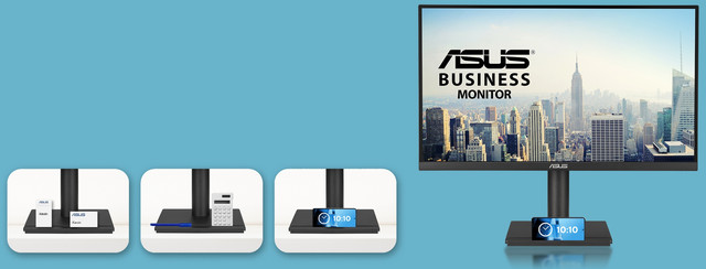 Деякі монітори ASUS сумісні з розробленим ASUS комплектом для міні-ПК (MKT03), який дозволяє користувачам встановлювати NUC / міні-ПК на задню частину підставки для монітора, роблячи робочий стіл вільним від зайвого простору та заощаджуючи місце.