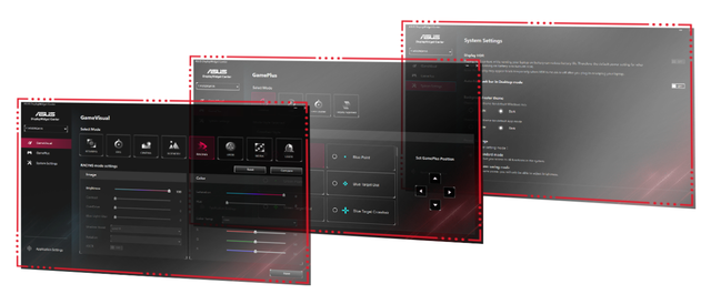Технологія ASUS GameVisual дає змогу швидко налаштовувати монітор відповідно до поточних завдань. Усього доступно сім режимів, між якими можна легко перемикатися за допомогою спеціальної кнопки або екранного меню.