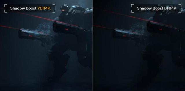Технологія ASUS Shadow Boost покращує чіткість темних фрагментів ігрових сцен без впливу на більш яскраві ділянки. Це дозволить швидше помітити ворога, який зачаївся в тіні.