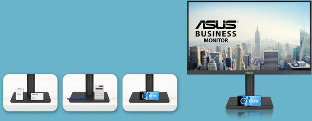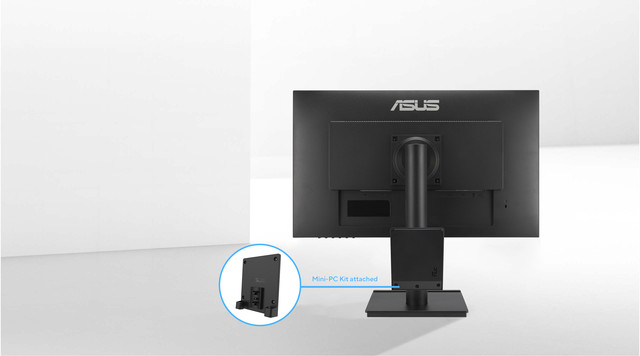 Деякі монітори ASUS сумісні з розробленим ASUS комплектом для міні-ПК* (MKT03), який дозволяє користувачам встановлювати NUC / міні-ПК на задню частину підставки для монітора, звільняючи робочий стіл від зайвого простору та заощаджуючи місце.