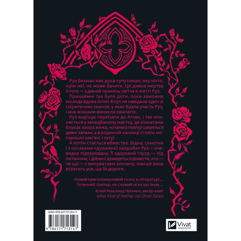 Руз Бекман має духа-супутницю, яку ніхто, крім неї, не може бачити. Ця дивна мертва істота — єдиний промінь світла в житті Руз. Принаймні так було доти, поки заможна молода вдова Аґнес Кнуп не навідала один зі спіритичних сеансів, у яких брала участь Руз, і між жінками виникла симпатія. Руз вирішує переїхати до Аґнес, і так опиняється у занедбаному маєтку, де кімнатами блукає хвора жінка, ночами в повітрі ширяться дивні запахи, а в родинній каплиці стоять моторошні кам’яні статуї. А потім стається вбивство. Бідна, самотня і з ознаками «душевної хвороби» Руз — очевидна підозрювана. Її здоровий глузд — під питанням, і дівчині доведеться довести, хто — чи що — є винуватцем злочину, інакше вона втратить усе, що їй дороге.